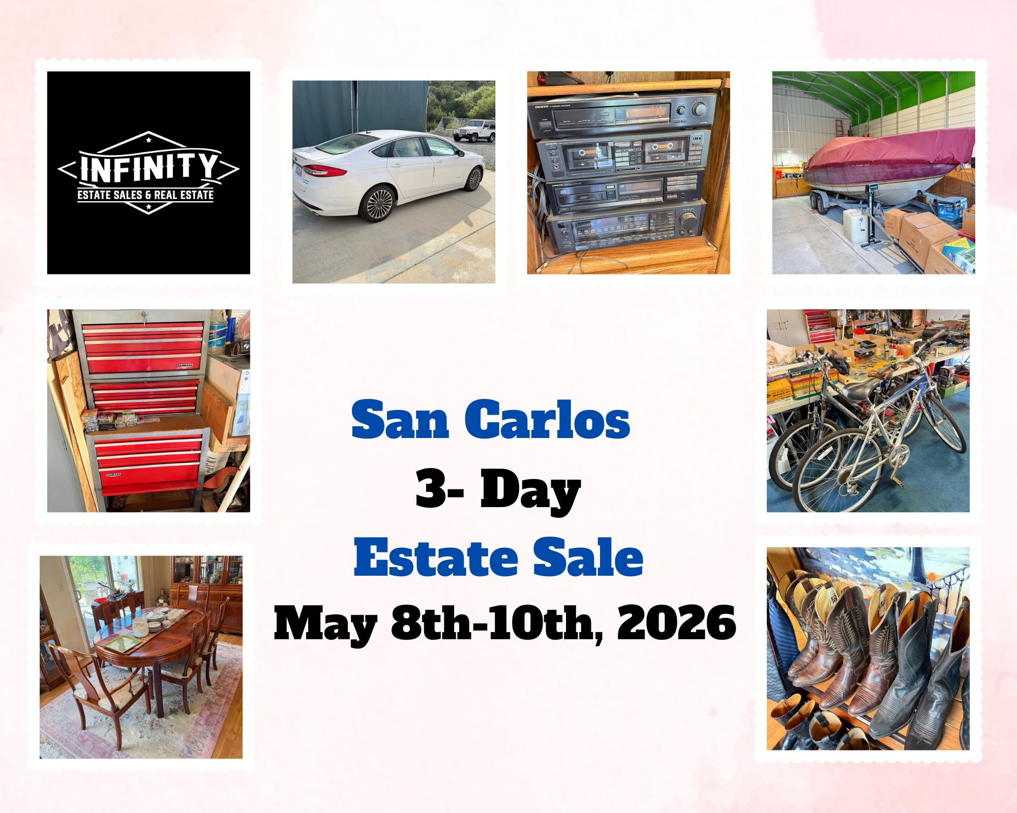 Join us in San Carlos for this packed 3-day Estate Sale! Lots of great items at this sale.